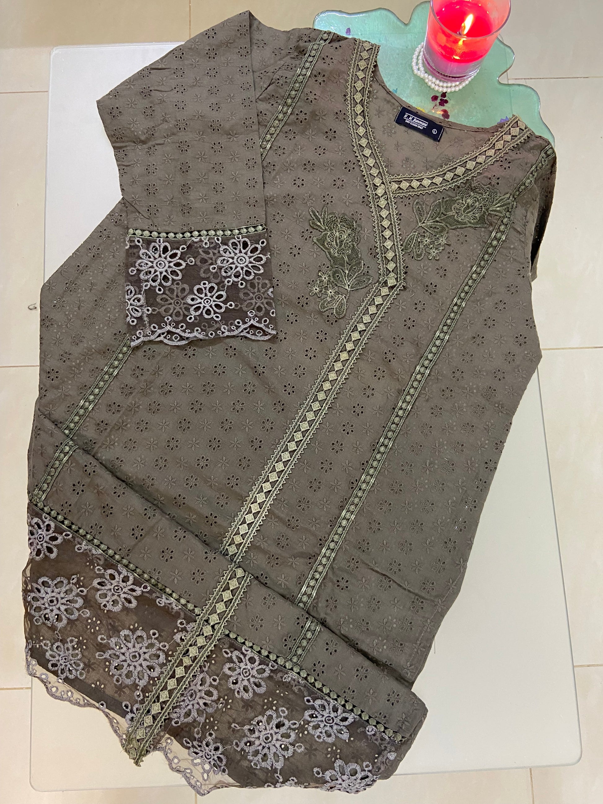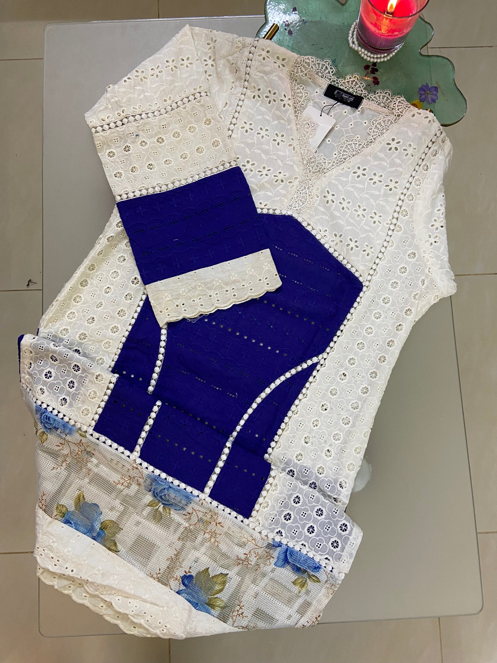 • Design: Intricate Chicken Kari embroidery, adding a touch of elegance