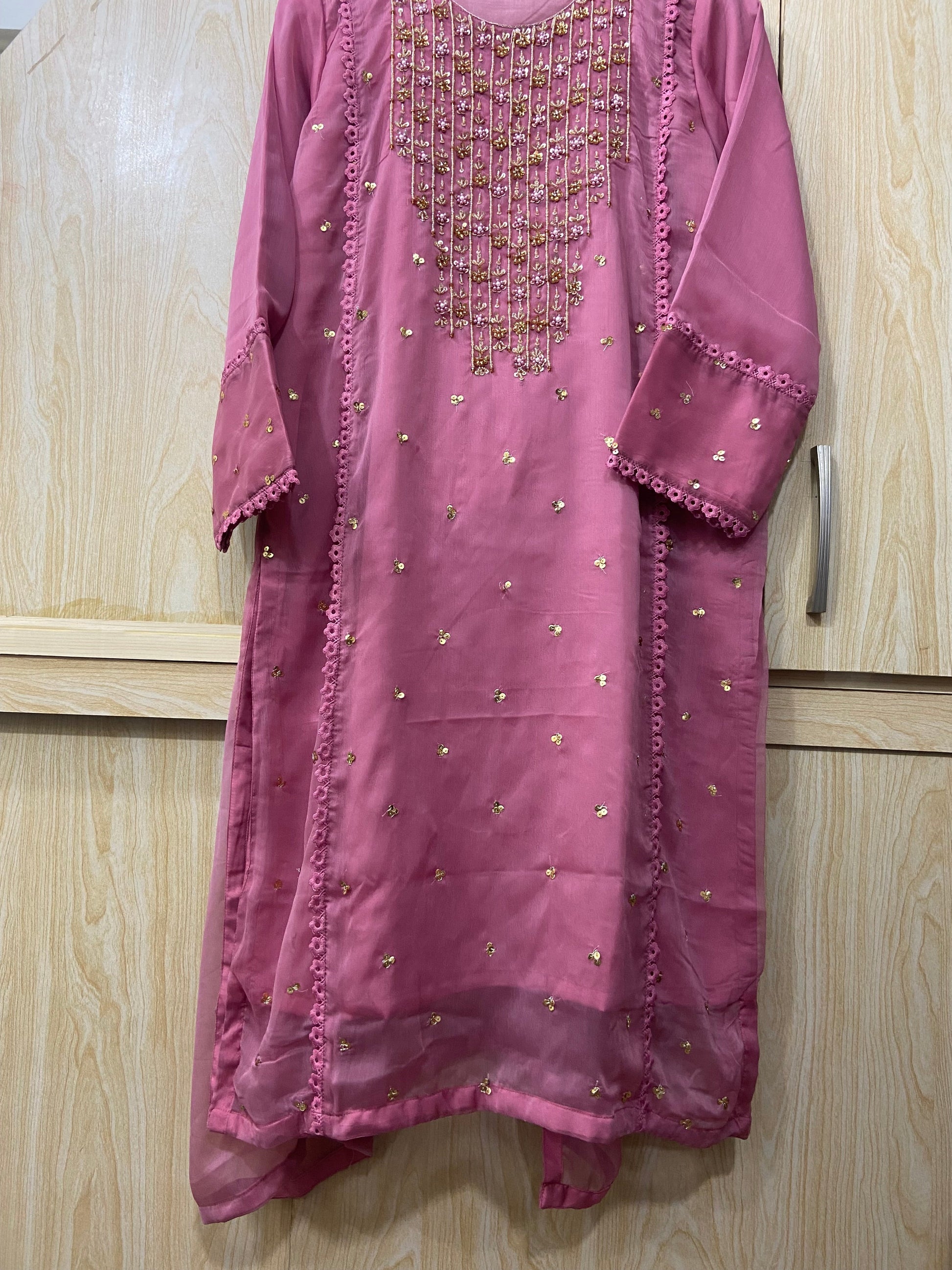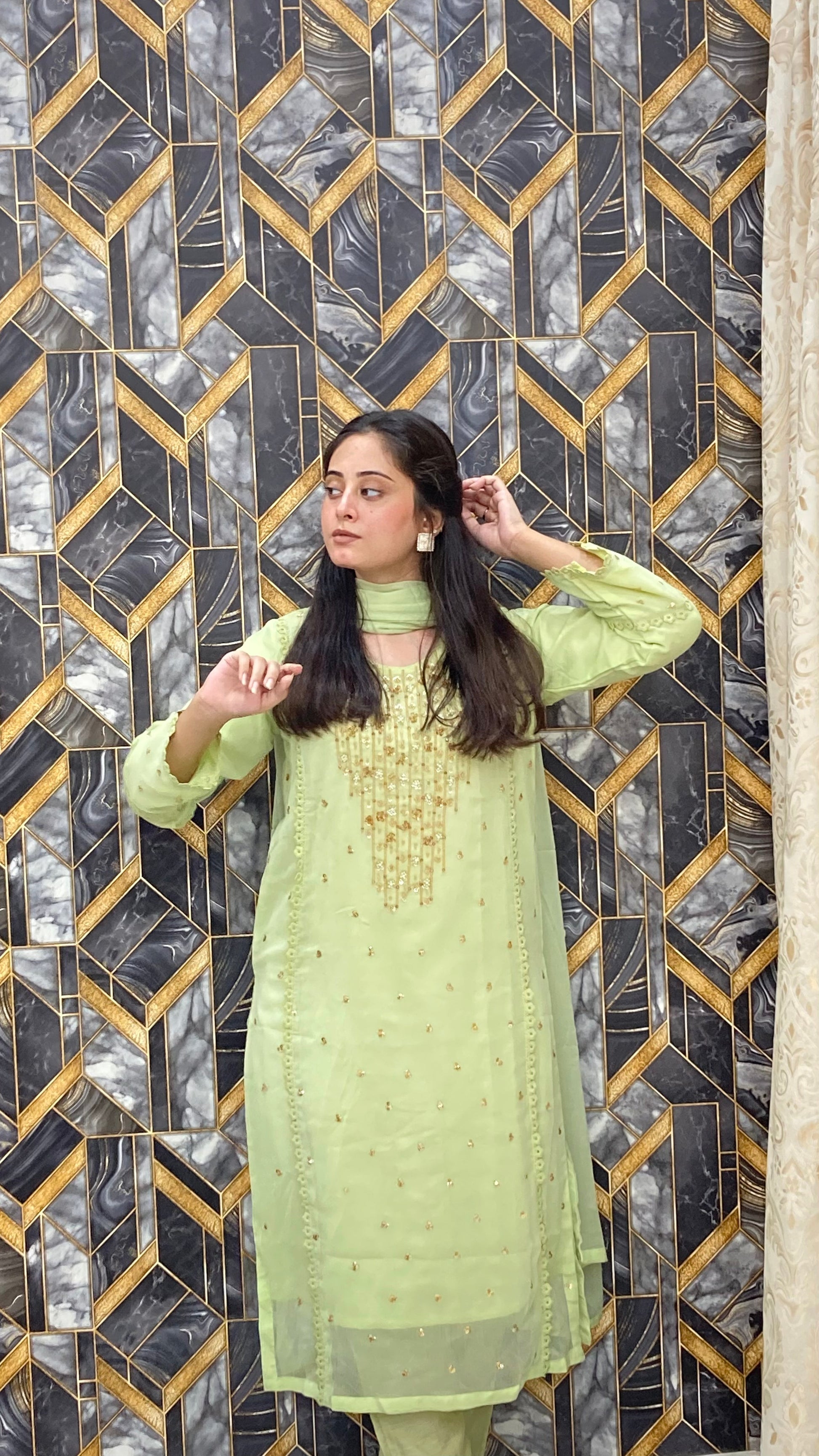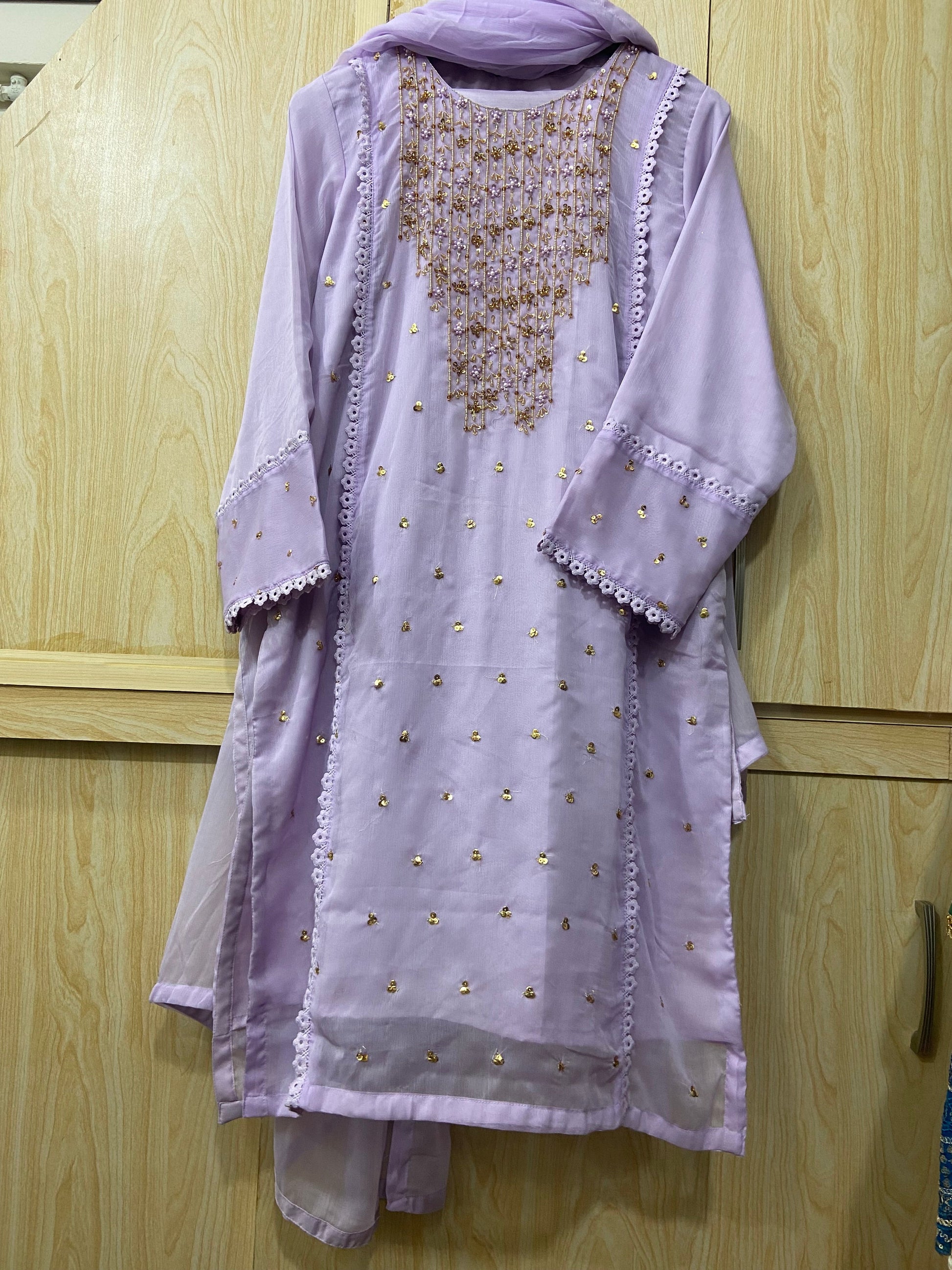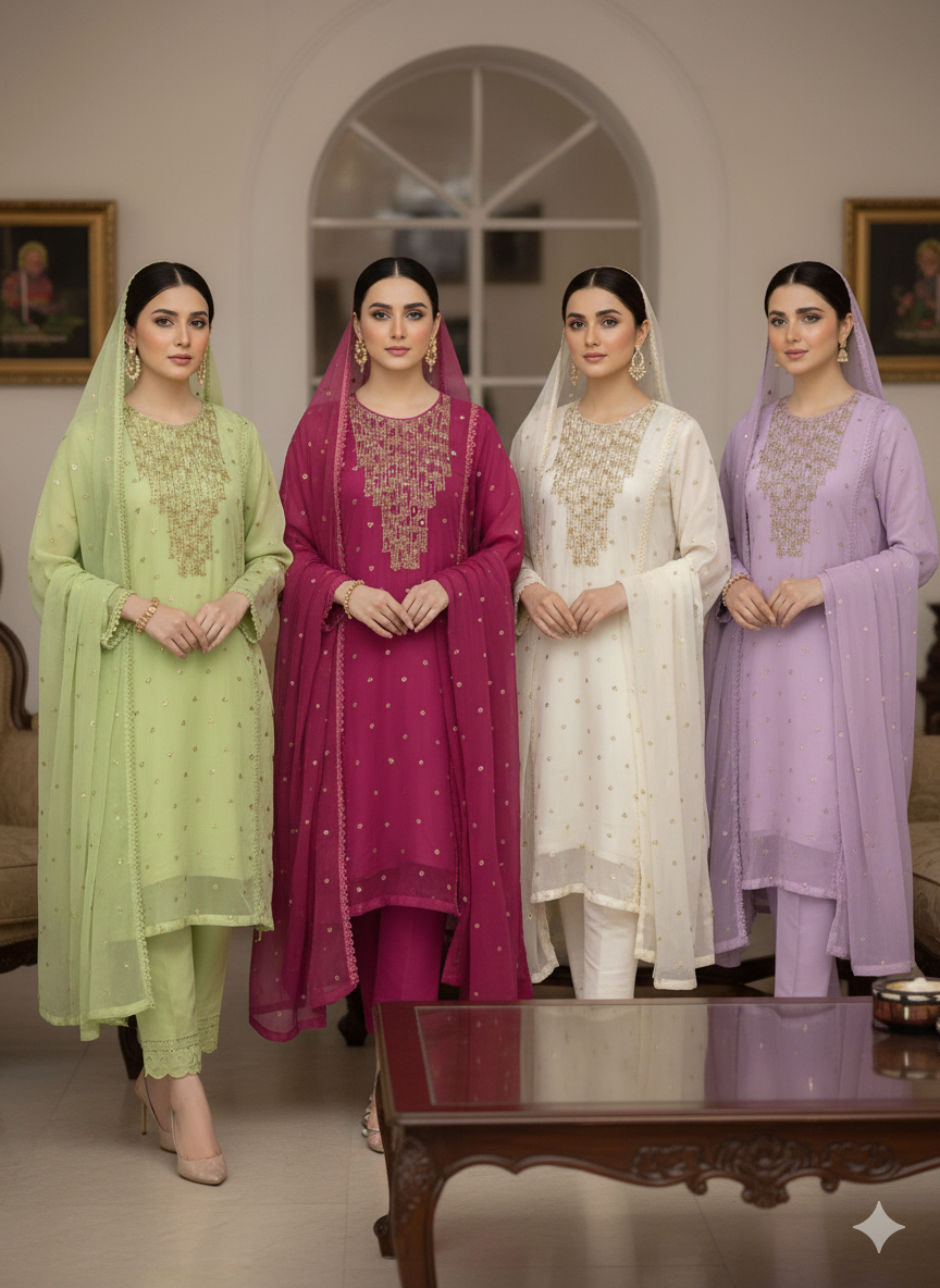 • Dupatta: A plain chiffon dupatta that complements the ensemble beautifully, adding a versatile and elegant finishing touch.