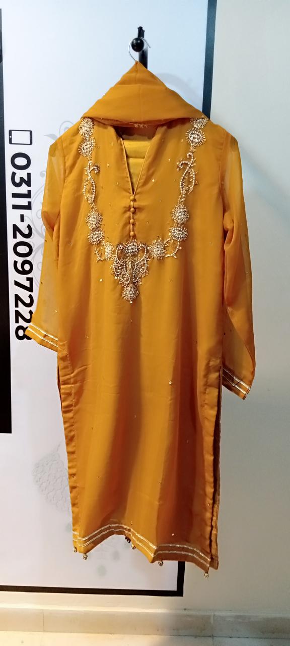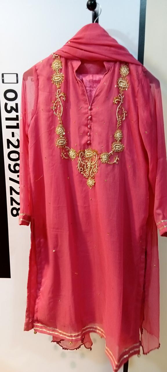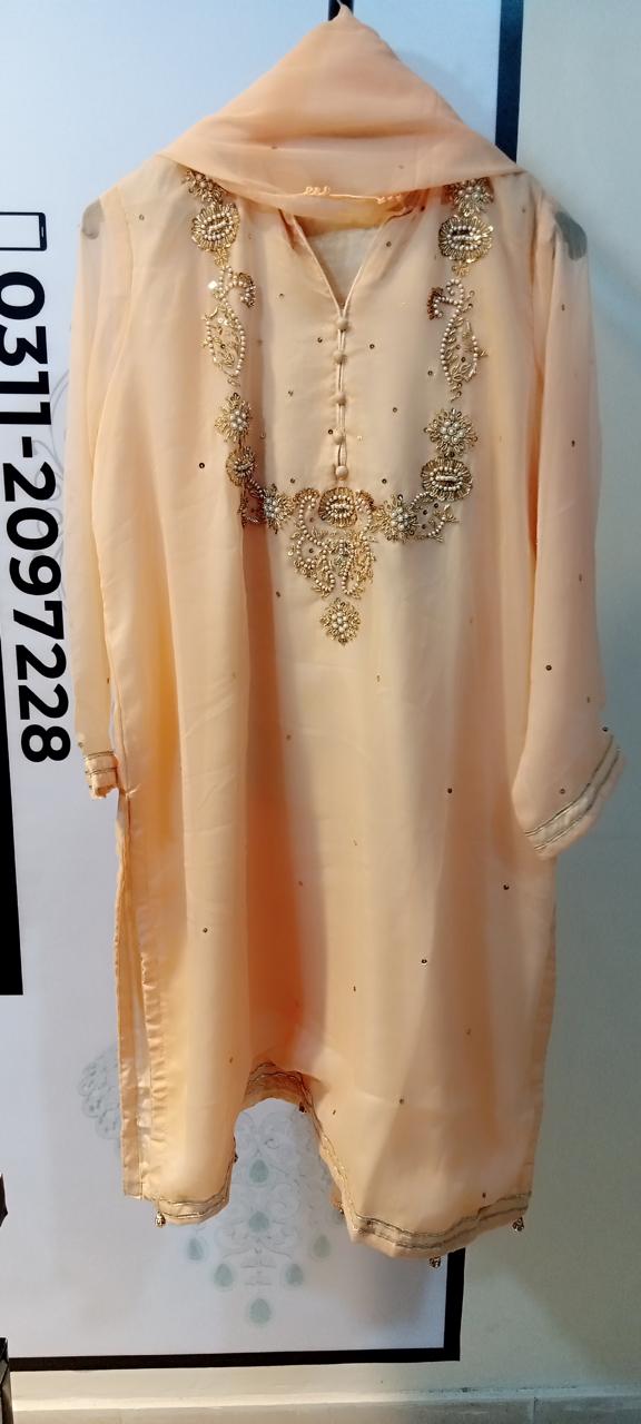 🌟 Dress: Crafted from luxurious chiffon, this dress features exquisite handwork that adds a touch of sophistication. The intricate detailing ensures you stand out with grace and style.