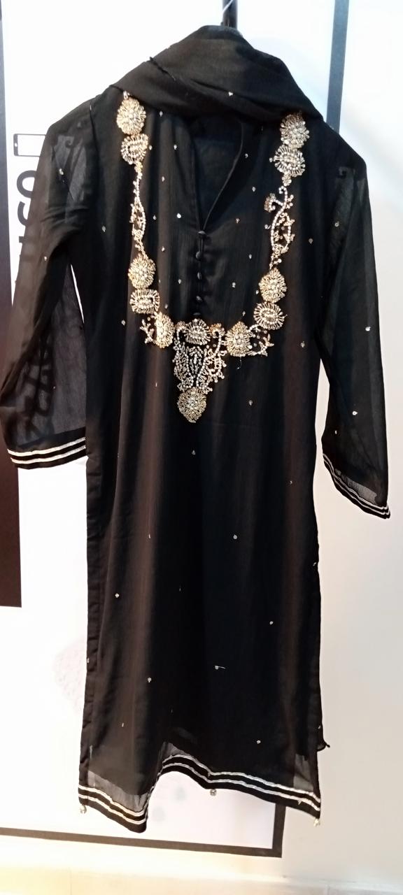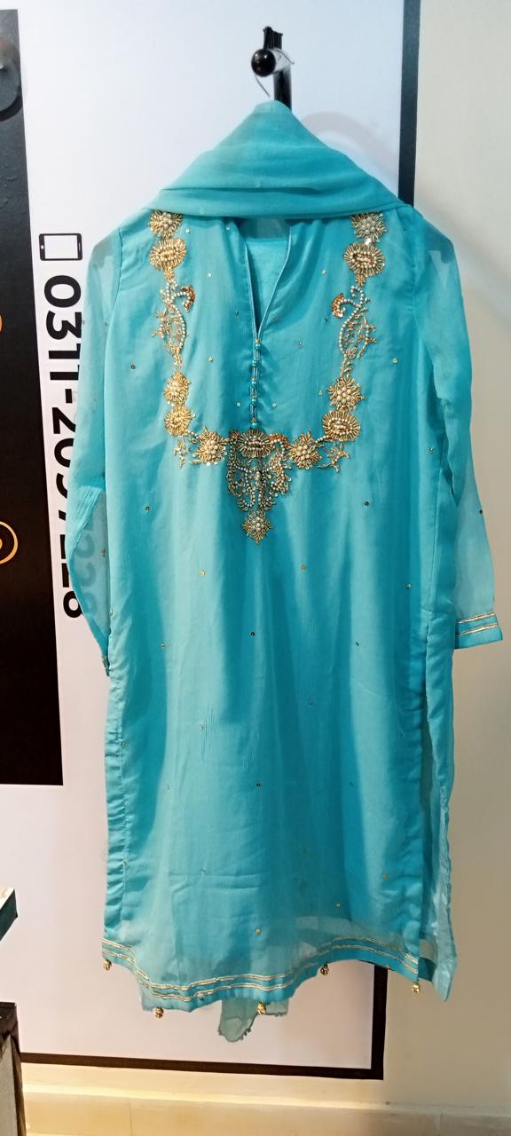 Dupatta: The matching chiffon dupatta is adorned with delicate sitara work, adding a subtle sparkle and enhancing the overall elegance of the ensemble.