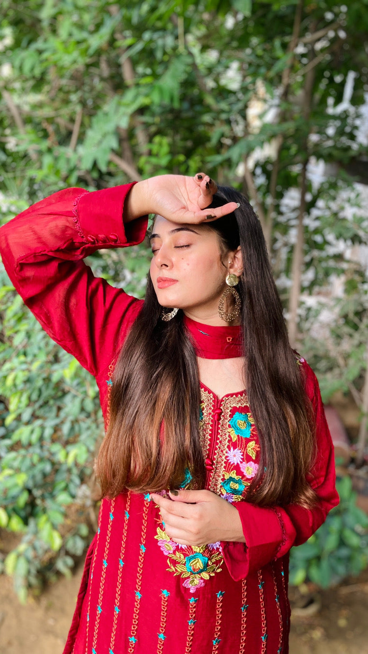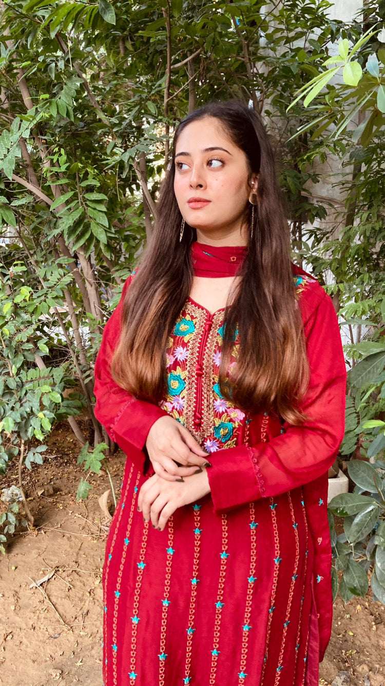 • Set Includes: Embroidered Chiffon Shirt, Chiffon Dupatta, and Trousers
