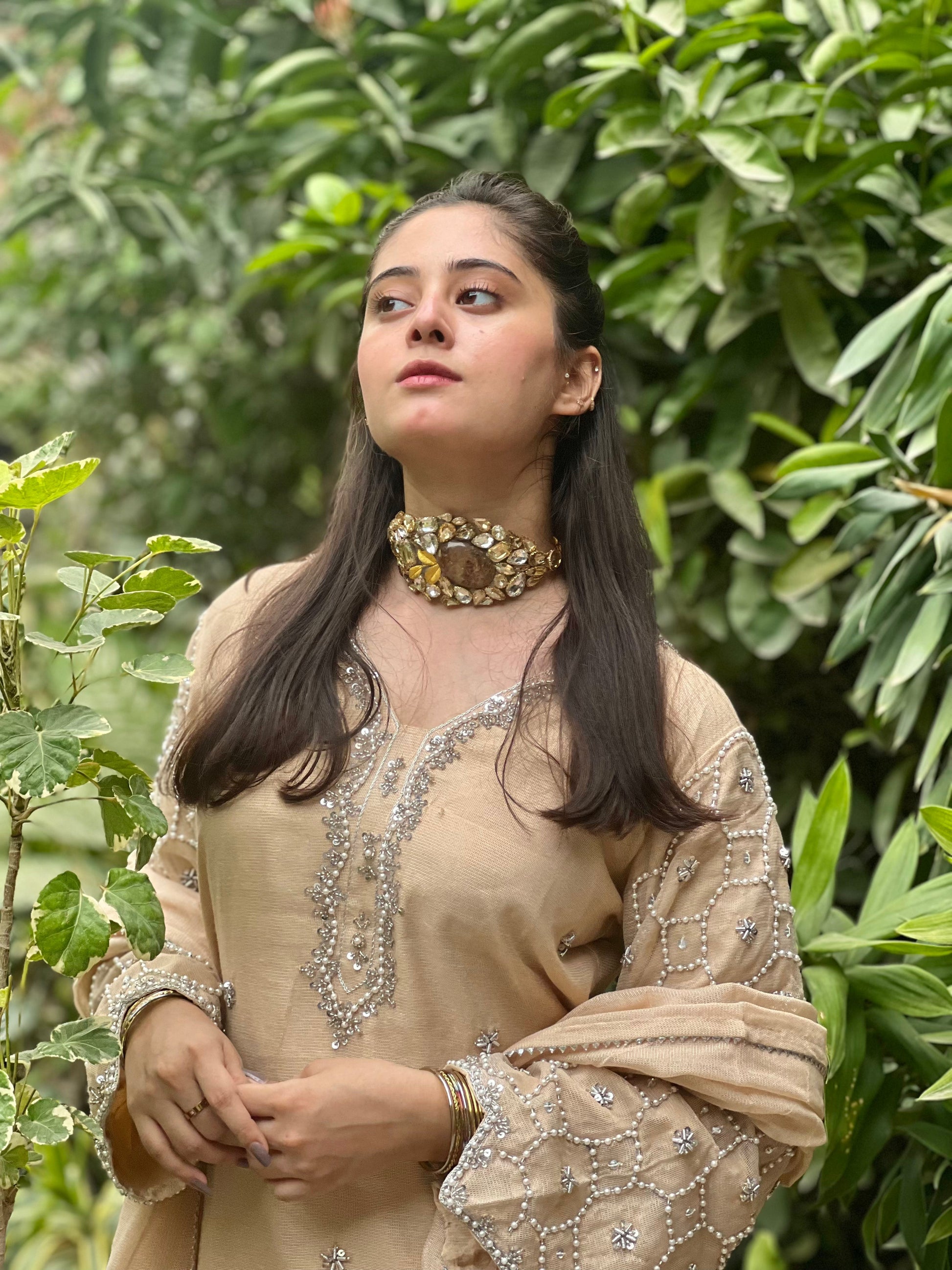 Hand-embroidered silver motifs and embellishments Pakistani Dress 2024