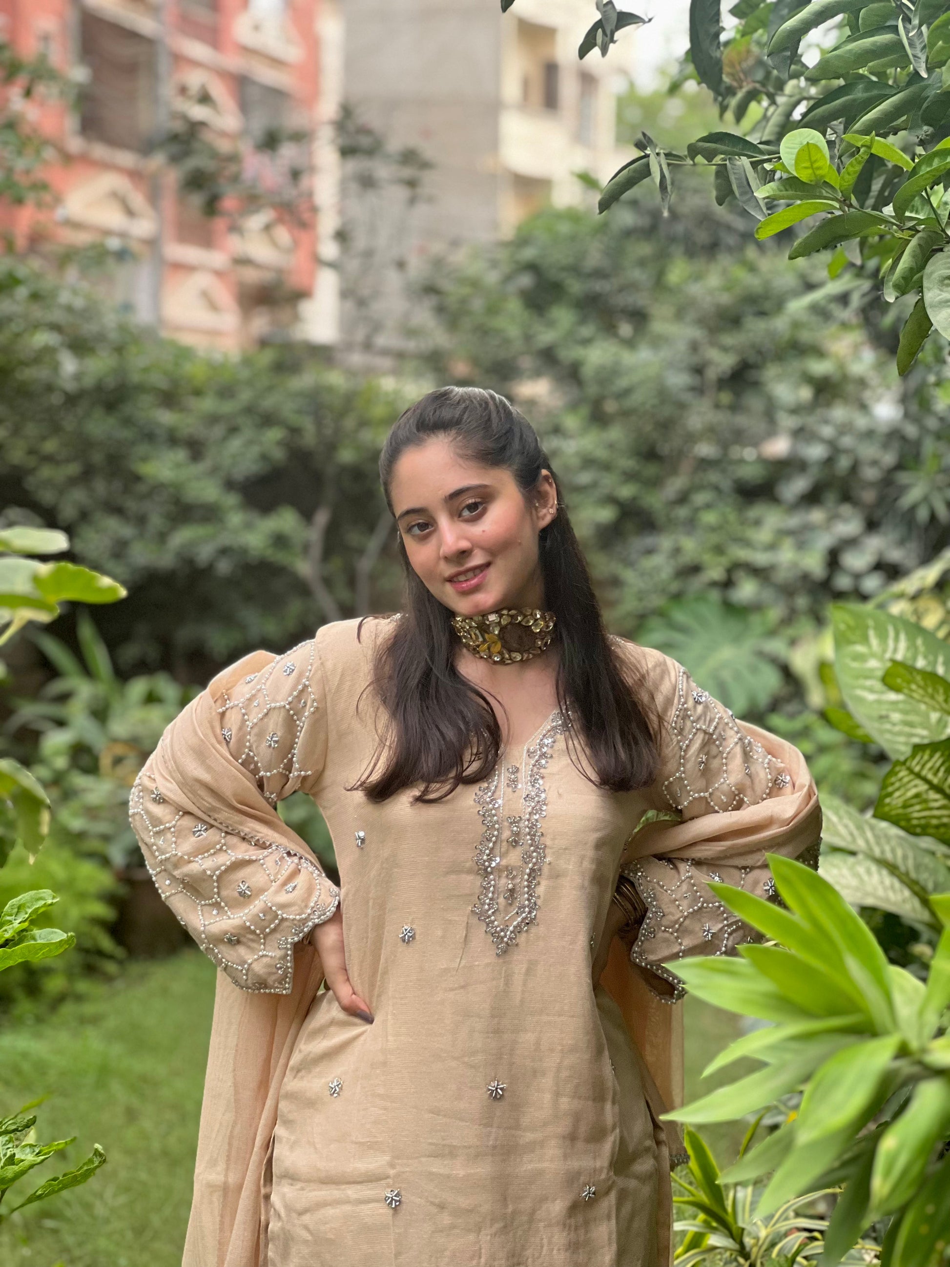 Elevate your wardrobe with our luxurious Khaddi Net fabric, an exquisite choice for creating elegant and sophisticated garments. This fabric combines the delicate allure of net with the traditional craftsmanship of Khaddi, resulting in a beautifully textured and versatile material.